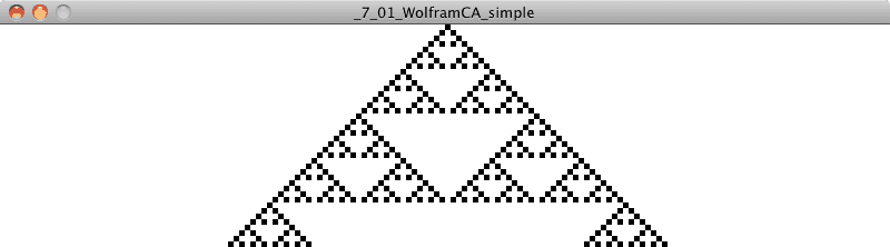 Perhaps the most significant scientific (and lengthy) work studying cellular automata arrived in 2002: Stephen Wolfram’s 1,280-page A New Kind of Science. Available in its entirety for free online, Wolfram’s book discusses how CA are not simply neat tricks, but are relevant to the study of biology, chemistry, physics, and all branches of science. This chapter will barely scratch the surface of the theories Wolfram outlines (we will focus on the code implementation) so if the examples provided spark your curiosity, you’ll find plenty more to read about in his book.