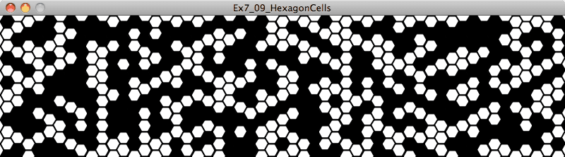 Over the course of the previous six chapters, we’ve slowly built examples of systems of objects with properties that move about the screen. And in this chapter, although we’ve been talking about a “cell” as if it were an object, we actually haven’t been using any object orientation in our code (other than a class to describe the CA system as a whole). This has worked because a cell is such an enormously simple object (a single bit). However, in a moment, we are going to discuss some ideas for further developing CA systems, many of which involve keeping track of multiple properties for each cell. For example, what if a cell needed to remember its last ten states? Or what if we wanted to apply some of our motion and physics thinking to a CA and have the cells move about the window, dynamically changing their neighbors from frame to frame?