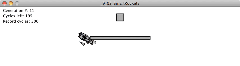 In each and every example in this book, the variables of these objects have to be initialized. Perhaps you made a whole bunch of particles with random colors and sizes or a list of vehicles all starting at the same x,y position on screen. But instead of acting as “intelligent designers” and assigning the properties of our objects through randomness or thoughtful consideration, you can let a process found in nature—evolution—decide for you.