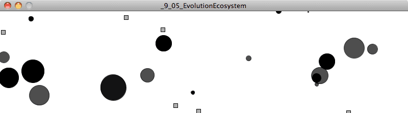 - Ecosystem Simulation. The traditional computer science genetic algorithm and interactive selection technique are what you will likely find if you search online or read a textbook about artificial intelligence. But as you'll soon see, they don’t really simulate the process of evolution as it happens in the real world. In this chapter, I want to also explore techniques for simulating the process of evolution in an ecosystem of pseudo-living beings. How can your objects that move about the screen meet each other, mate, and pass their genes on to a new generation? This would apply directly to the Ecosystem Project outlined at the end of each chapter.