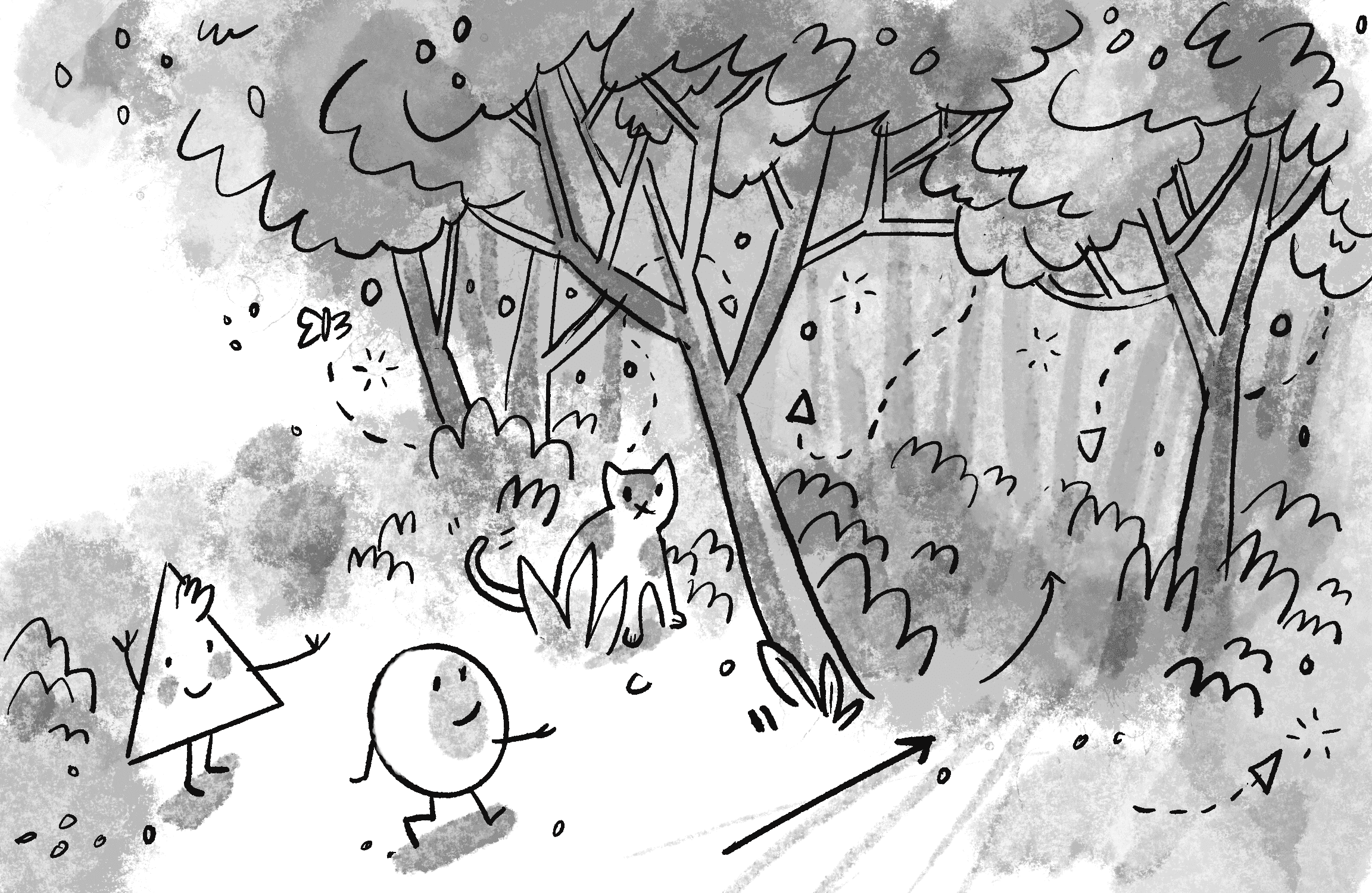 In Chapter 1, I’m going to talk about the concept of a vector and how it will serve as the building block for simulating motion throughout this book. But before I take that step, let’s think about what it means for something to simply move around the screen. Let’s begin with one of the best-known and simplest simulations of motion—the random walk.