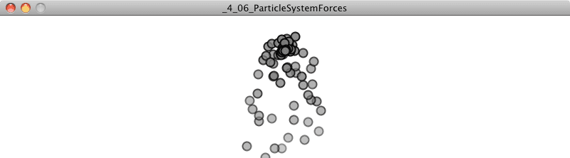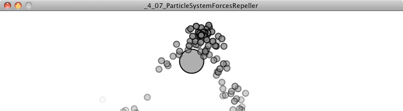 Notice how throughout this entire process of adding a repeller to the environment, I never once considered editing the Particle class itself. A particle doesn’t actually have to know anything about the details of its environment; it simply needs to manage its position, velocity, and acceleration, as well as have the ability to receive an external force and act on it.