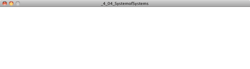 First, I’m going to want to deal with flexible quantities of elements. Some examples will have zero things, sometimes one thing, sometimes ten things, and sometimes ten thousand things. Second, I’m going to want to take a more sophisticated object-oriented approach. Instead of writing a class to describe a single particle, I’m also going to want to write a class that describes the collection of particles—the particle system itself. The goal here is to be able to write a sketch that looks like the following: