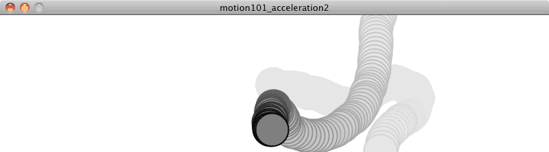 Taking this first step in using vectors won’t allow me to do anything new. Just adding vectors won’t magically make your Processing sketches simulate physics. However, they will simplify your code and provide a set of functions for common mathematical operations that happen over and over and over again while programming motion.